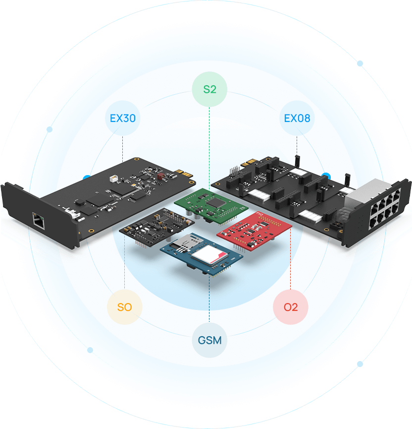 Las interfaces de telefonía son totalmente modulares y personalizables. Utilice módulos de telefonía, tarjetas de expansión y módulos DSP para añadir fácilmente más interfaces de telefonía y ampliar la capacidad del sistema.