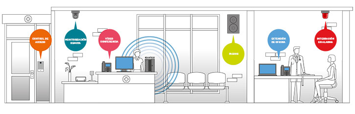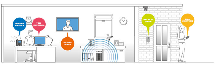 Todas las funciones y características necesarias ya se integran en el hardware del dispositivo, incluido un punto de acceso Wi-Fi para ordenadores y smartphones, capacidad troncal SIP múltiple y funciones de gestión de llamadas. El dispositivo también se puede combinar con las series KX-HDV y KX-NTV para crear un sistema de completo de comunicación y supervisión.